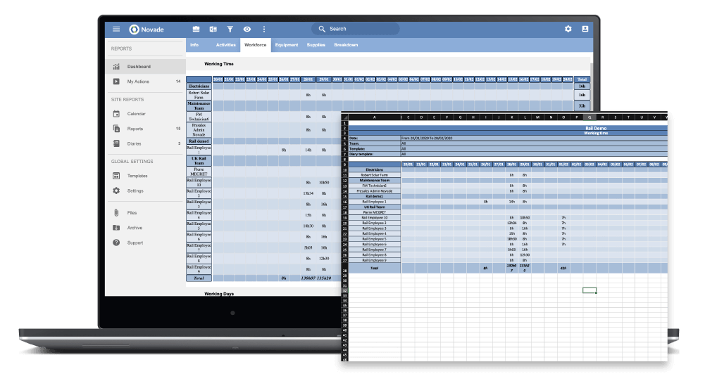• Monitor produksi dan konsumsi secara waktu nyata, rasio konsolidasi dan deviasi menggunakan aplikasi monitoring proyek konstruksi Novade